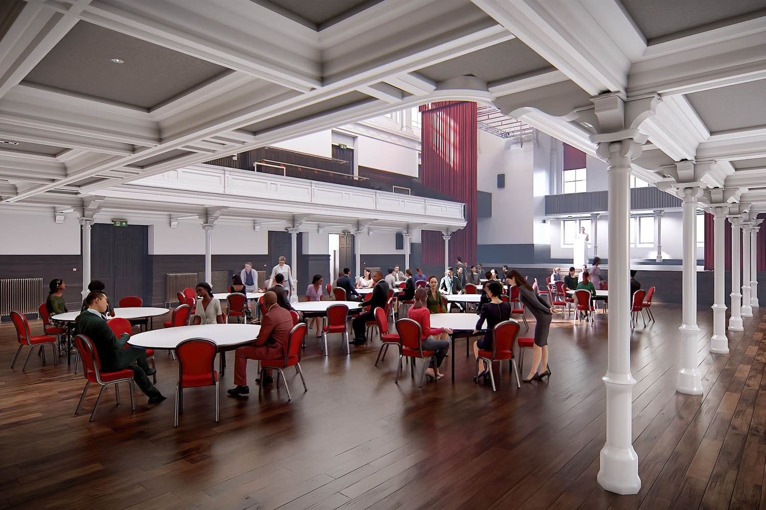 – entirely new rooms created within currently-unused spaces, including a café-bar, dance studio, and screening room, widening the building’s range of uses;